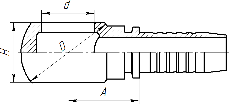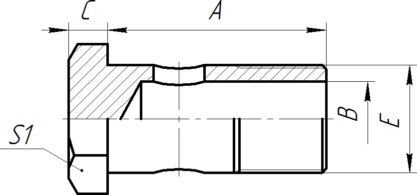 | Номинальный диаметр | Резьба E | Внутренний D фитинга | Размер A | Размер C | Размер H | Размер под ключ S2 | |