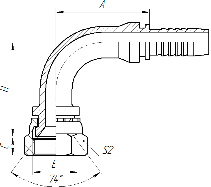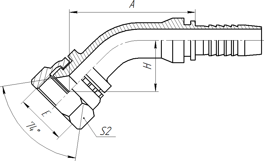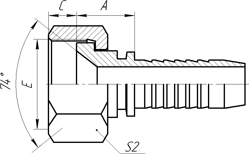 | Номинальный диаметр | Резьба E | Внутренний D фитинга | Размер A | Размер C | Размер H | Размер под ключ S2 | |