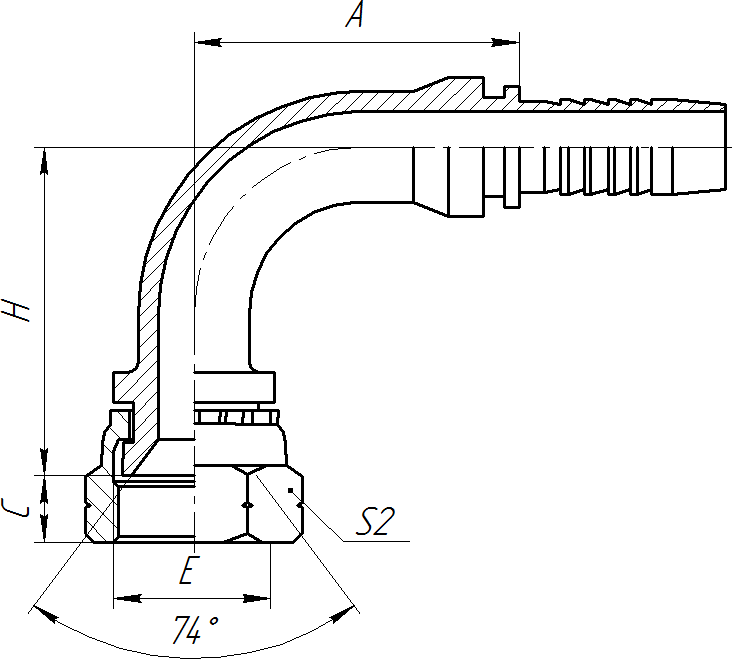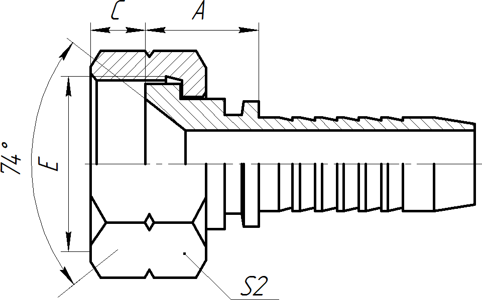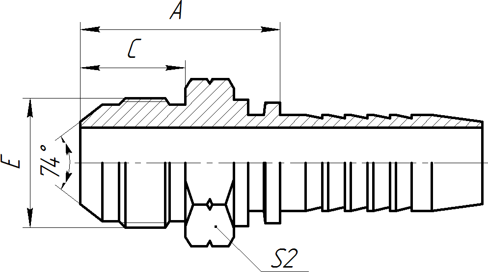 | Номинальный диаметр | Резьба E | Внутренний D фитинга | Размер A | Размер C | Размер H | Размер под ключ S2 | |